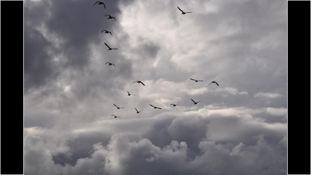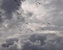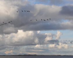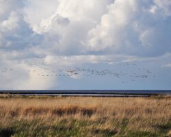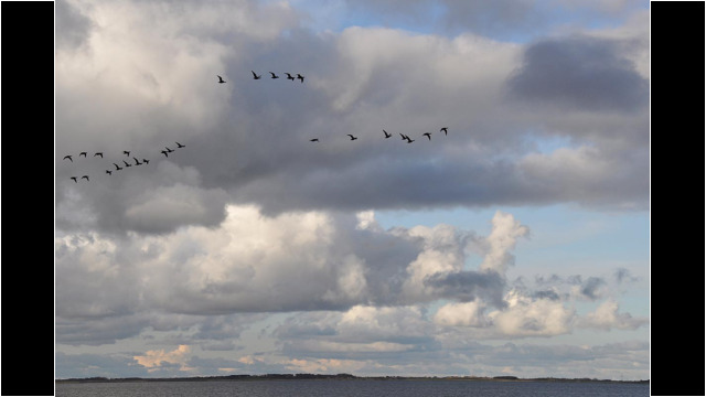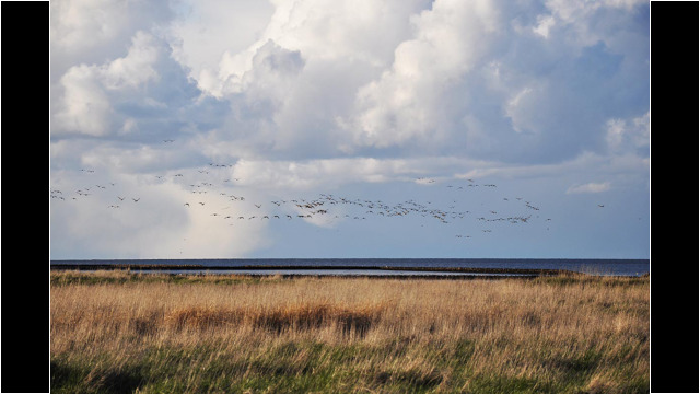 Zugvögel am Wolkenhimmel zwischen Amrum und Föhr