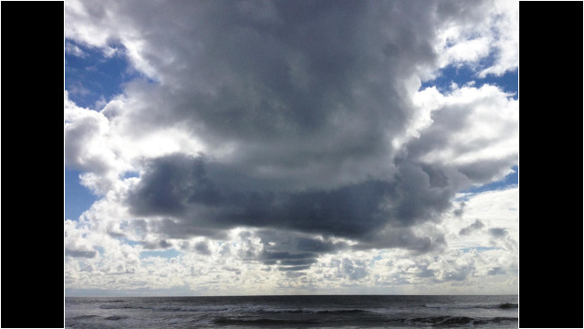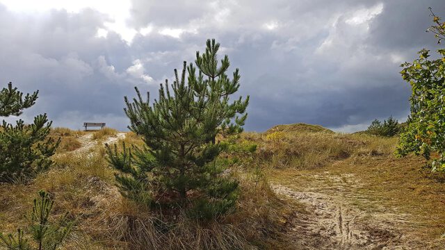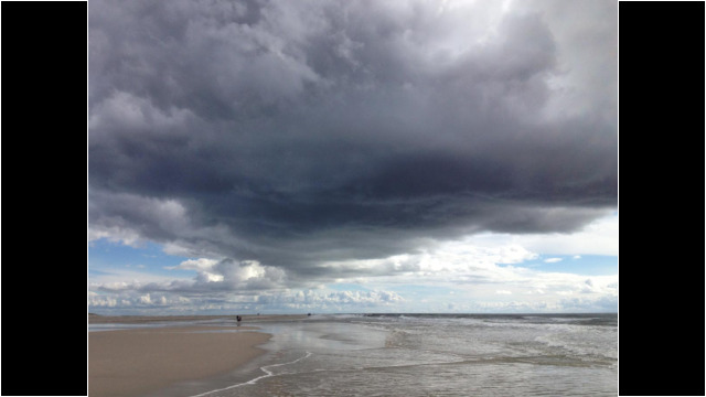 Dunkles Wolkenband treibt zum Nebeler Strand