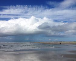 Cumuluswolken und Cumulonimbus-Wolken gehören zu den eindrucksvollen Naturschauspielen auf Amrum. Gerade, weil der Blick fast überall auf der Insel so ungetrübt in die Ferne gehen und man sie heranziehen sehen kann. Zugegeben, wir haben sie hier als eigenes Stichwort aufgeführt, weil die Foto-ABC-Möglichkeiten beim Buchstaben C auf Amrum etwas begrenzt sind. Sie hätten sonst zum Teil auch weiter unten unter dem Stichwort „Gewitterwolken“ oder in Gänze unter dem Stichwort „Wolken“ ihren Platz finden können. Aber dort gibt es ohnehin noch so viele interessante Wolkenformationen, dass sich ein eigener Bereich für Cumulus durchaus anbietet.