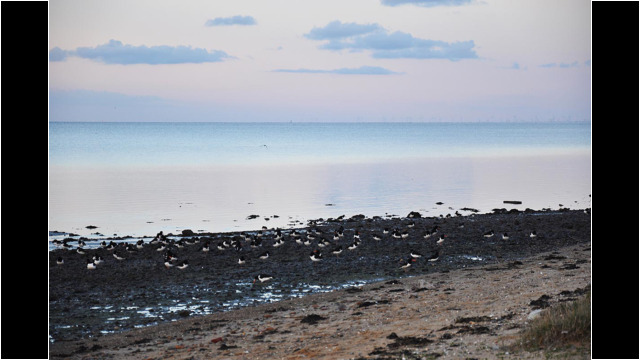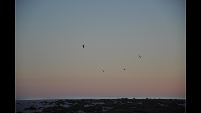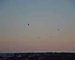 Vögel, Wolken, Meer am Abend