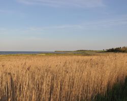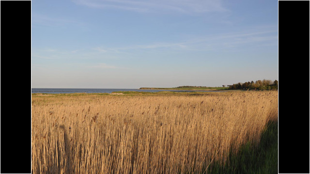 Schilfgürtel bei Nebel auf Amrum im Abendlicht
