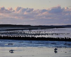 Brandgänse in der Abenddämmerung