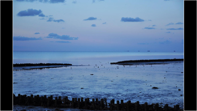 Das Wattenmeer in Nebel in abendlichem Blau