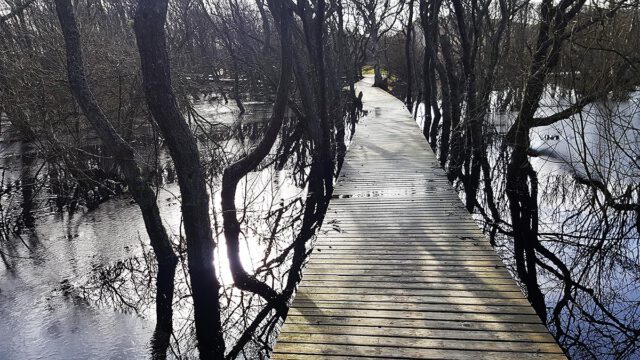 Auch Feuchtgebiete werden von Bohlenwegen überbrückt