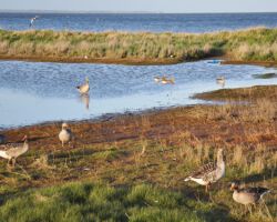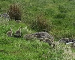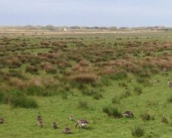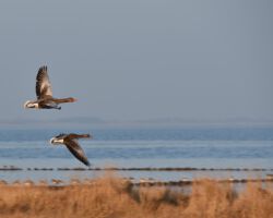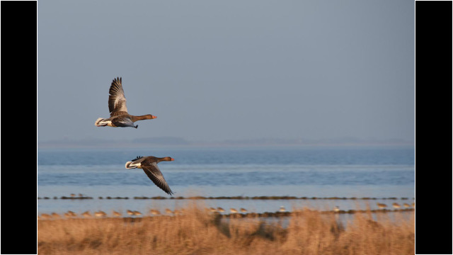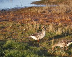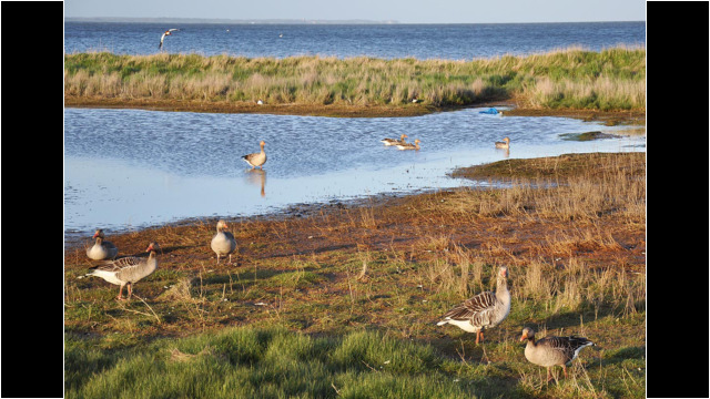 Graugänse sind auf Amrum allgegenwärtig. Im Frühjahr ziehen sie ihre Jungen hier groß. Besonders das Marschland nördlich von Norddorf, hinter dem Asphaltdeich, wird dann zu Kinderstube. Häufig bleiben einige ausgewachsene Tiere zum Schutz bei den Jungen, während die anderen auf Nahrungssuche gehen. All das lässt sich hier wunderbar beobachten.