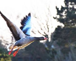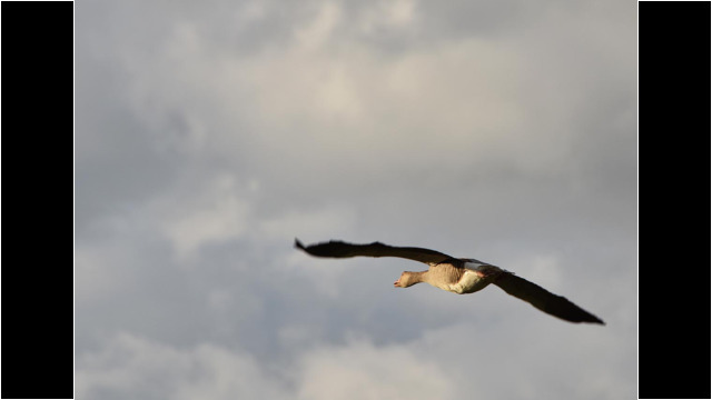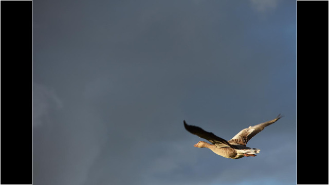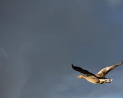 Graugans in den letzten Sonnenstrahlen vor dem aufziehenden Unwetter