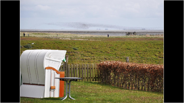 Strandkorb-Blick auf Knutt-Schwärme