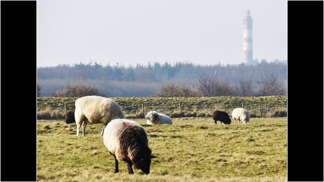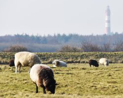 Leuchtturm mit Schafen