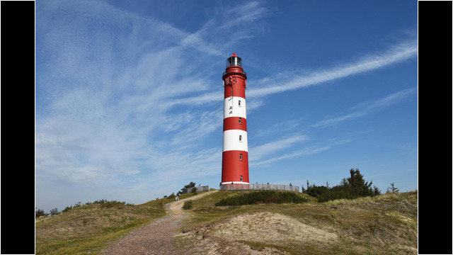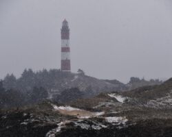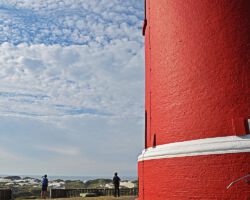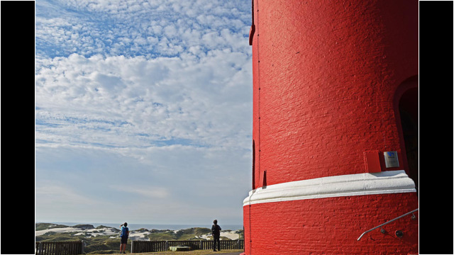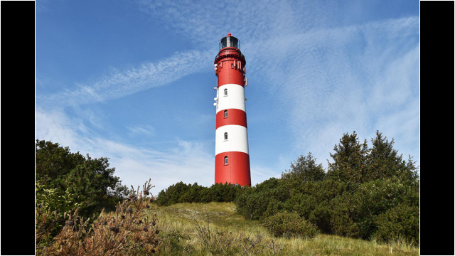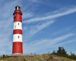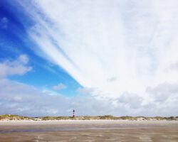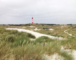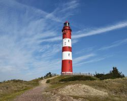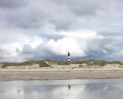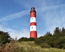 Amrums Leuchtturm ist das Wahrzeichen der Insel. Er sichert die Schifffahrt im Amrumer Wattenmeer. Mit 41,8 Meter Bauhöhe auf einer Düne errichtet, liegt seine Feuerhöhe 63 Meter über dem mittleren Hochwasser, weiß Wikipedia. Damit ist er auch auf der Insel selbst weithin zu sehen. Fotos von ihm gibt es wie Sand am Meer. Auch bei uns: Einige Blicke aus der Distanz und einige Nahaufnahmen. Außerdem gibt es Bilder des Nebeler Leuchtfeuers, das auf der Wattseite der Orientierung dient, und zwei vom ähnlich gebauten in Wittdün, das nicht mehr in Betrieb ist. Das Norddorfer Quermarkenfeuer hat seine eigene Seite.