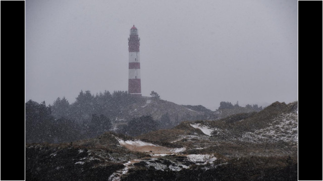 Leuchturm im Schneesturm