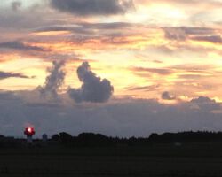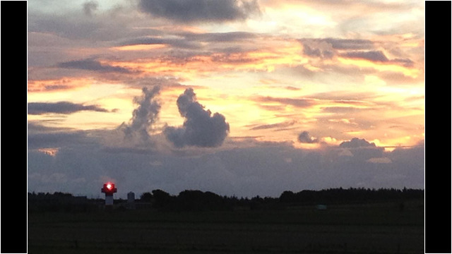 Eigentümliche Wolkenformation mit Leuchtturm