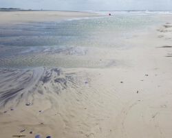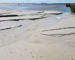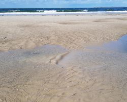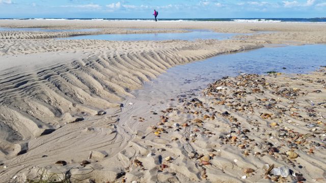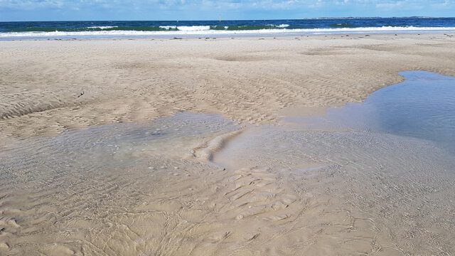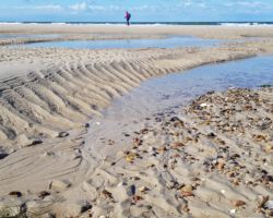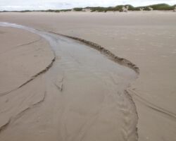 Manch ein Fluss am Strand bildet sich bei jeder Ebbe neu