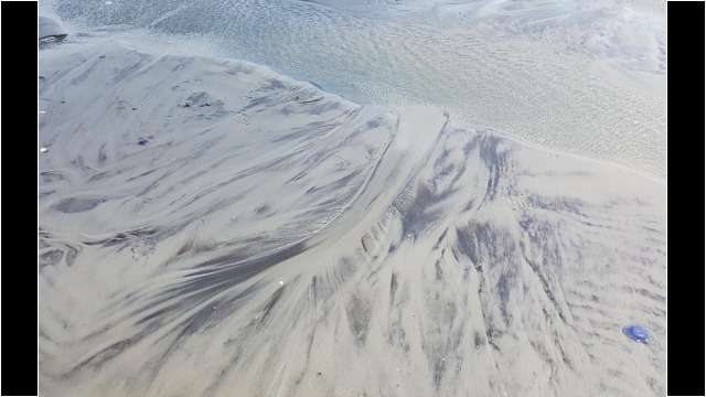 Ablaufender Priel: wie die Luftaufnahme eines mäandernden Flussdeltas
