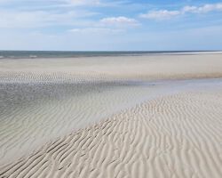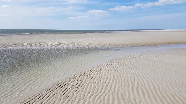 Priele und Strömungsrippel auf dem sandigen Riffel-Watt