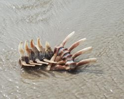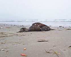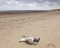 Der Tod gehört zum Leben. Auch in Amrums Tierwelt. Doch nur gelegentlich stößt man auf verendete Tiere. Kaninchen und Vögel zumeist. Ein Basstölpel mit Dolly Ropes aus Kunststoff im Schnabel gehört hier mahnend dazu. Ein auf einem Friedhofsgrab verendetes Kaninchen. Verwaiste Graugansküken vor ihrem toten Geschwister. Und am Spülsaum natürlich auch die ganze Vielfalt von Muscheln, Krebsen und Quallen. Jedoch nur ganz selten mal ein Fisch.