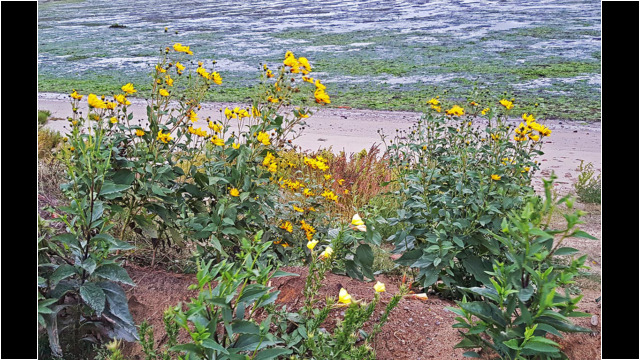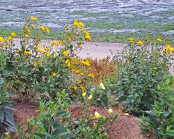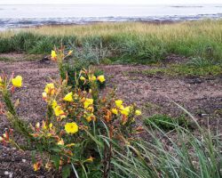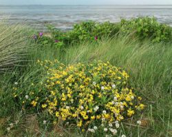 Gelber Hornklee, Weiß-Klee, Heckenrose und Dünengras im Uferbereich