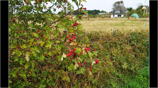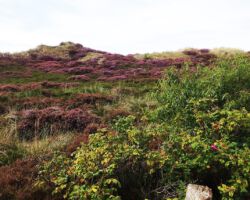 Wenn die Hagebutten reif sind, blüht auch die Heide