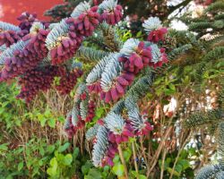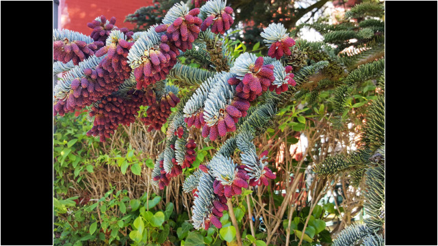Frühlingsbote: Üppig blühende Tanne im Ortskern von Nebel