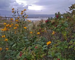 Pflanzen haben es auf Amrum nicht so leicht wie andernorts. Stürmisches Wetter, salzige Luft, wehender Sand… und am Inselrand gelegentlich der direkte Kontakt zum Meerwasser. Dennoch kann sich in der Natur und den Gärten eine bunte Vielfalt behaupten, deren oft im Detail liegende Schönheit sich je nach Jahreszeit wandelt. Nachstehend eine Auswahl von Momentaufnahmen dazu. Einigen besonders ins Auge fallenden Pflanzen haben wir auch eine eigene Rubrik gegeben: Heckenrose, Heidekraut, Queller, Strandaster; Traubenkirsche . Weitere finden sich in den Rubriken Blumen, Frühlingsblüten und Strandpflanzen bei den Landschaften, in den Dünen und natürlich auch im Wald, auf den Friedhöfen, in Nebel und unter manch weiterem Stichwort.