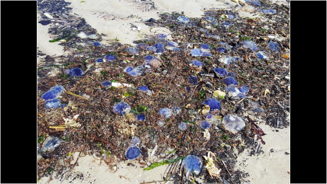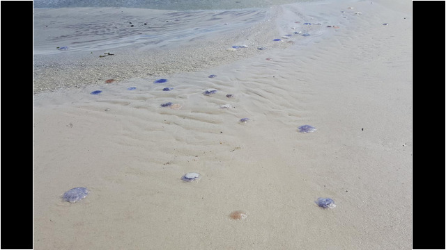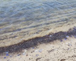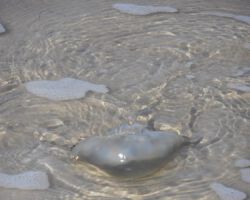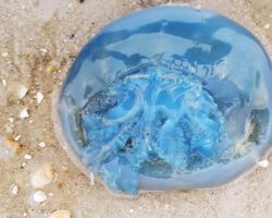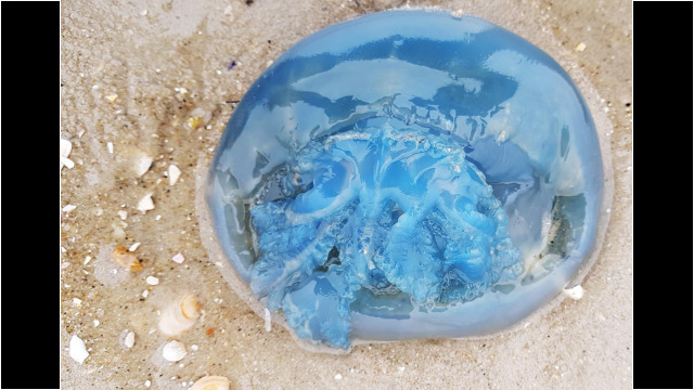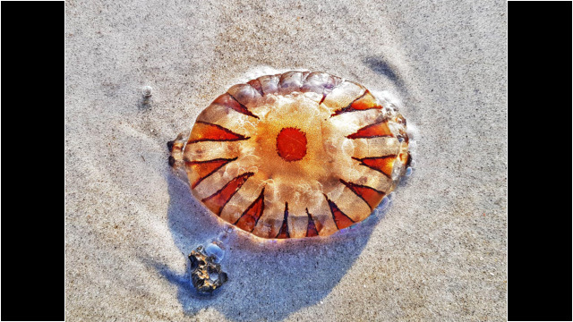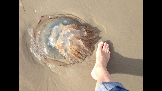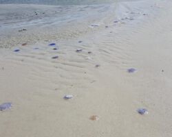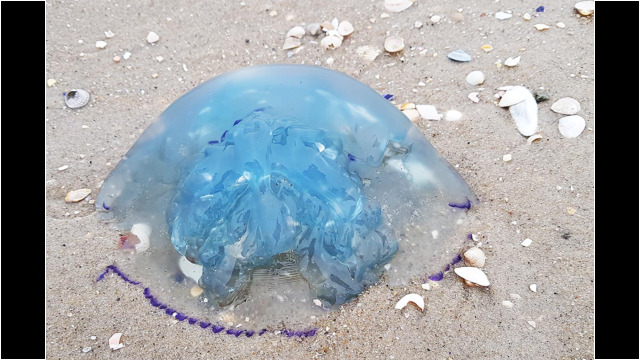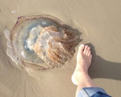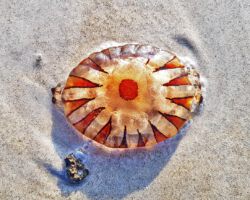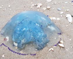 Quallen sind auf Amrum häufig am Strand zu finden. Ihre Zahl hält sich aber meist in Grenzen, und beim Baden sind sie selten lästig. Manchmal bleiben sie in den Teichen abgeflossener Priele zurück. Manchmal fallen sie mit den Prielen trocken. Manchmal spülen die Wellen sie an Land.