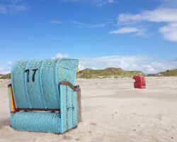 Strandkörbe sind das Inselmöbel schlechthin. Auf Amrum stehen sie in großer Zahl an den Stränden von Wittdün, Süddorf, Nebel und Norddorf für Feriengäste bereit. Aber nicht nur dicht an dicht wie an manch anderem Ort. Der Strand ist so groß, da findet, wer will, problemlos einen Strandkorb fernab der anderen. Der Korb schützt vor Wind und Wetter. Dafür wird er in die jeweils gewünschte Richtung gedreht. Kommt der Wind von hinten, die Sonne von vorne, wird es so selbst bei kühlem Wetter gemütlich warm. Dies macht ihn jenseits des Strandes ebenfalls beliebt: Man sieht die Körbe auf Amrum auch in Gärten, vor Gaststätten, selbst auf Balkonen…